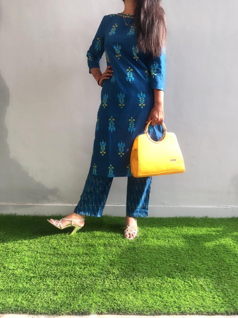 *Smart look straight fit kurti handwork on neckline pencil pants with elastic *